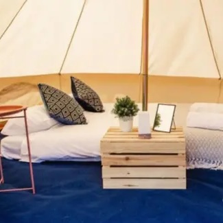 - Step straight into comfort with a pre-erected glamping tent ready and waiting for you
