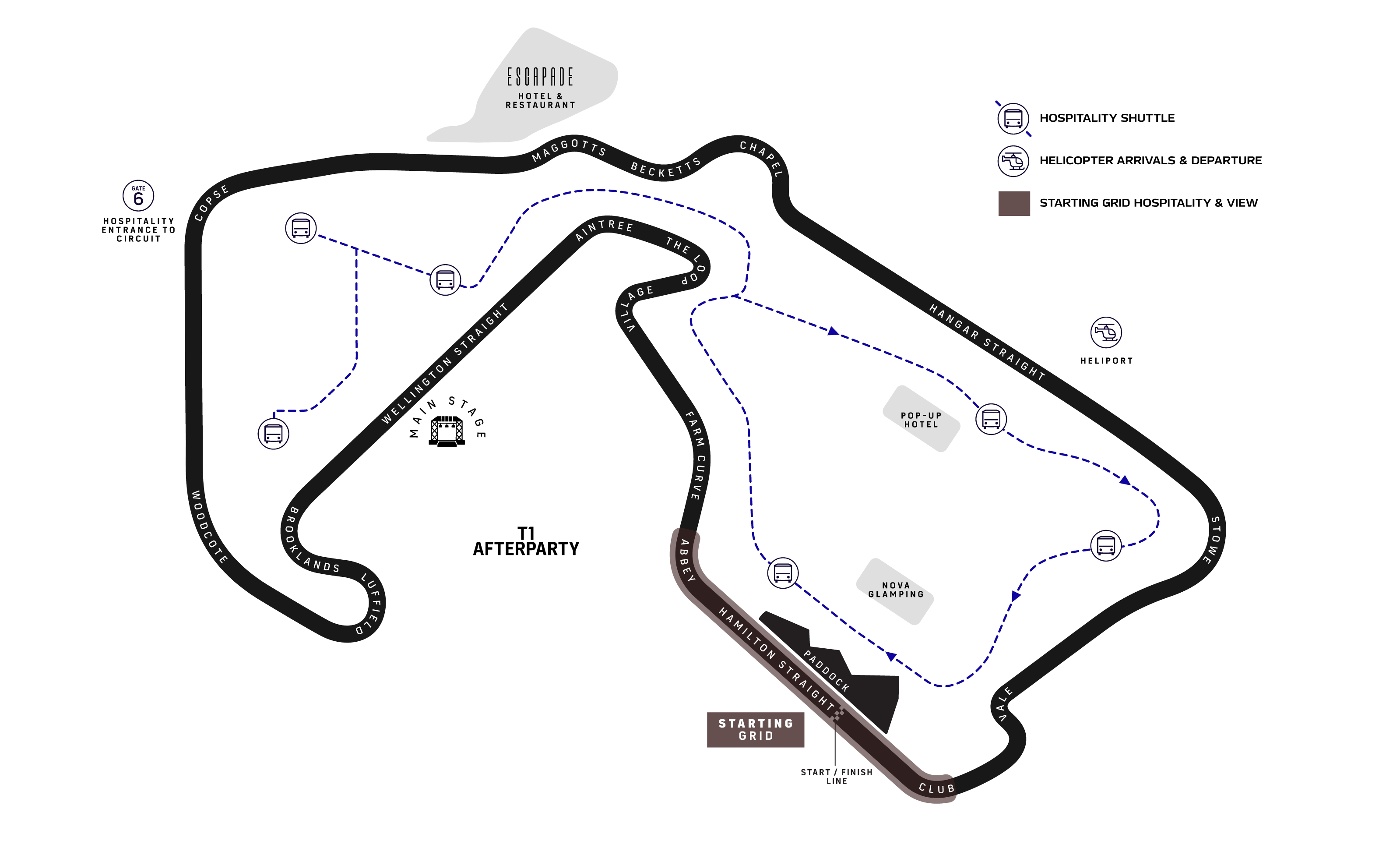 Entertain key clients, friends or family in one of the most coveted spaces at the British Grand Prix. Located at the Hilton Garden Inn, Starting Grid offers enviable views opposite the pit action and directly overlooking the start/finish line.