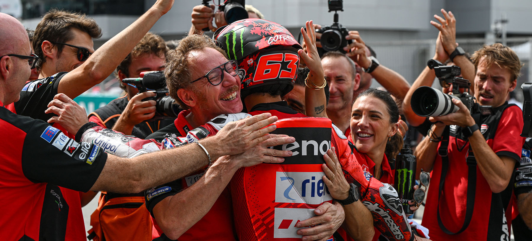 Securing his third pole position at Sepang International Circuit in three years, Francesco Bagnaia was clearly determined to improve upon the results from his recent race weekends. Leading every lap of Saturday’s Sprint in Malaysia, and finishing over two seconds ahead of Alex Marquez in 2nd, Bagnaia’s victory was impressive, but even he was reluctant to comment on whether the victory marked a turning point for him and his struggles this season.