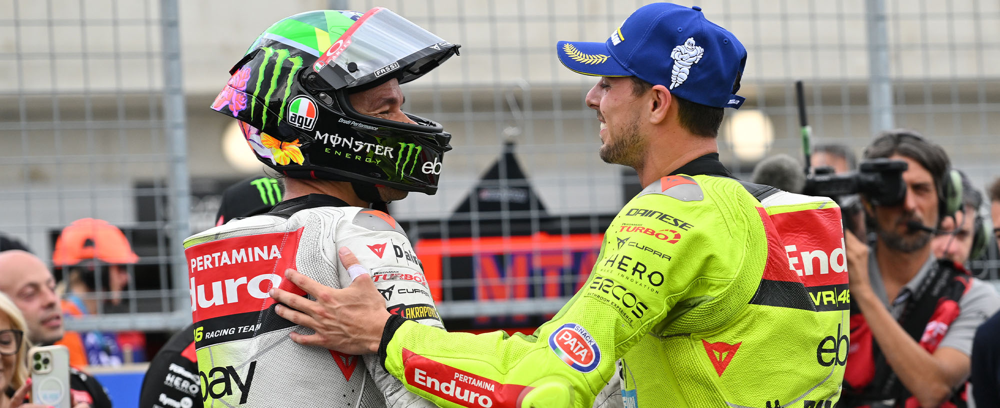 Pertamina Enduro VR46 Racing Team’s Fabio DiGiannantonio gave himself plenty of work to do, after failing to go directly through to Q2 during Friday’s Practice session. However, a strong Q1 performance saw him graduate to Q2, and eventually qualify on the front row, with his teammate Franco Morbidelli qualifying two places behind him in 5th. The two riders went on to secure a double podium in the Sprint, finishing 2nd and 3rd respectively - a great result for the team owned by motorcycle racing legend, Valentino Rossi.